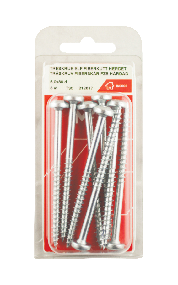 Freseriller under hodet gir en perfekt forsenking og et flisfritt resultat. Skruer opp til 40mm er helgjenget og resterende lengder delgjenget. For innendørs bruk.