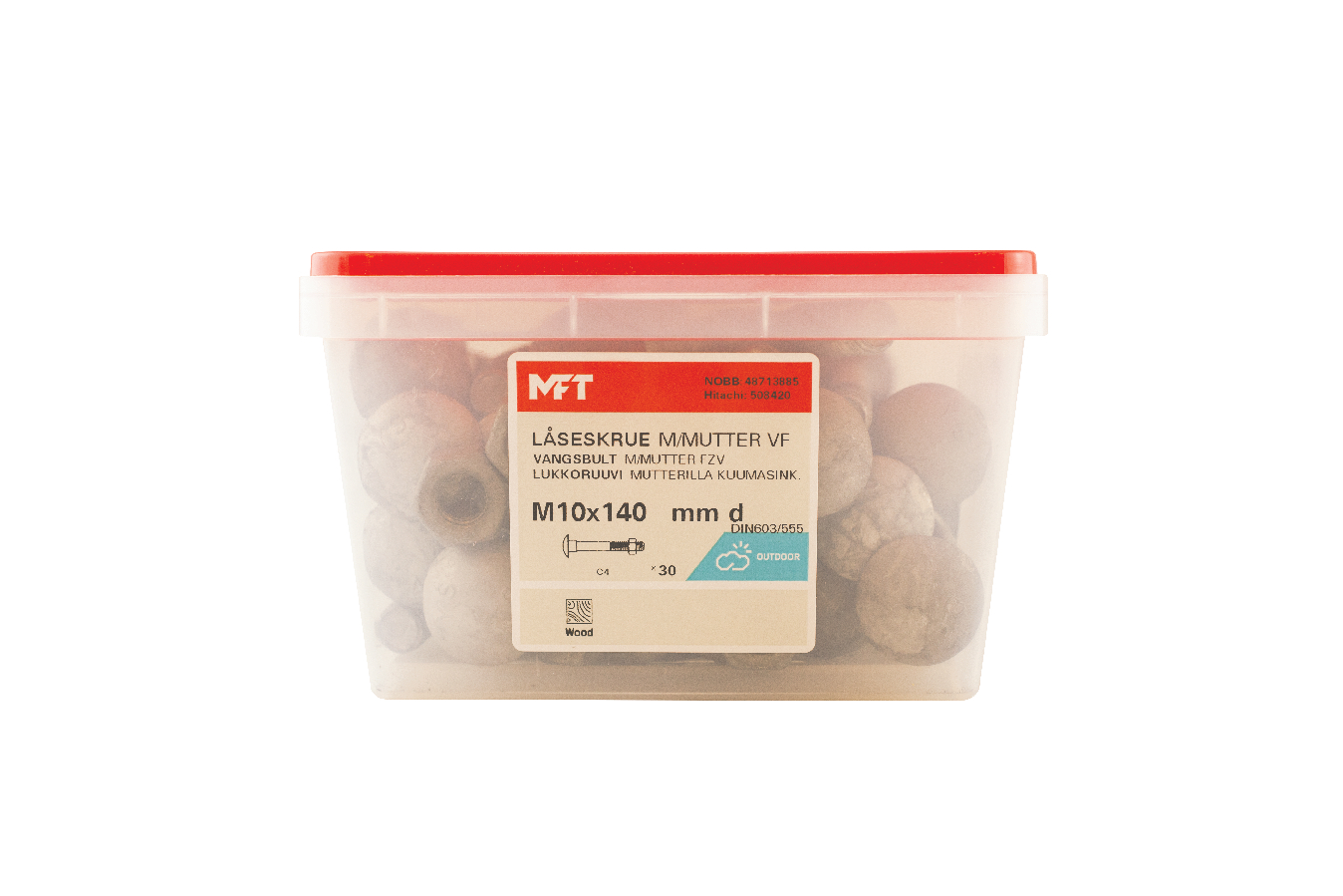 MFT Låseskrue med mutter brukes for sammenskruing av trestendere, platematerialer mot underlag av tre eller stål. Under det kuppelformede hodet er det en firkant som fungerer som en låsing i det mykere materialet da sammenskruing skjer. For innendørs og utendørs bruk.