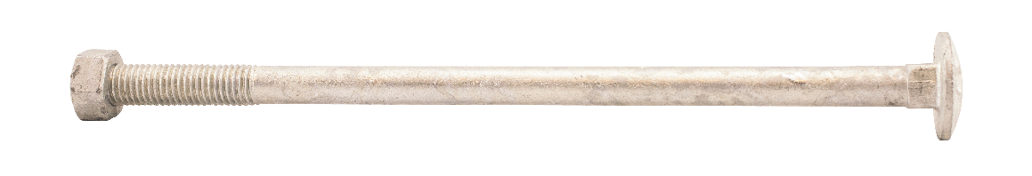MFT Låseskrue med mutter, låseskruen er produsert i henhold til DIN603 og mutter i henhold til DIN934 standard i herdet karbonstål, kvalitet 4.8. Låseskrue og mutter har en varmforsinket overflatebehandling. Korrosjonsklasse C3. Delgjenget.
