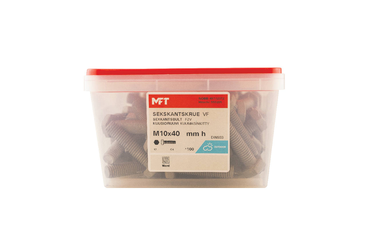 MFT Sekskantskrue M6S brukes sammen med mutter ved sammenskruing av detaljer. For innendørs og utendørs bruk.
