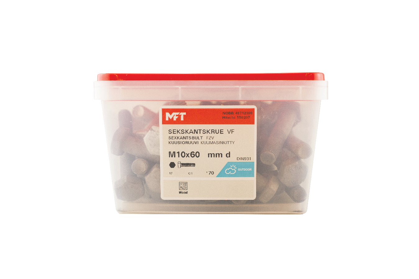 MFT Sekskantskrue M6S brukes sammen med mutter ved sammenskruing av detaljer. For innendørs og utendørs bruk.