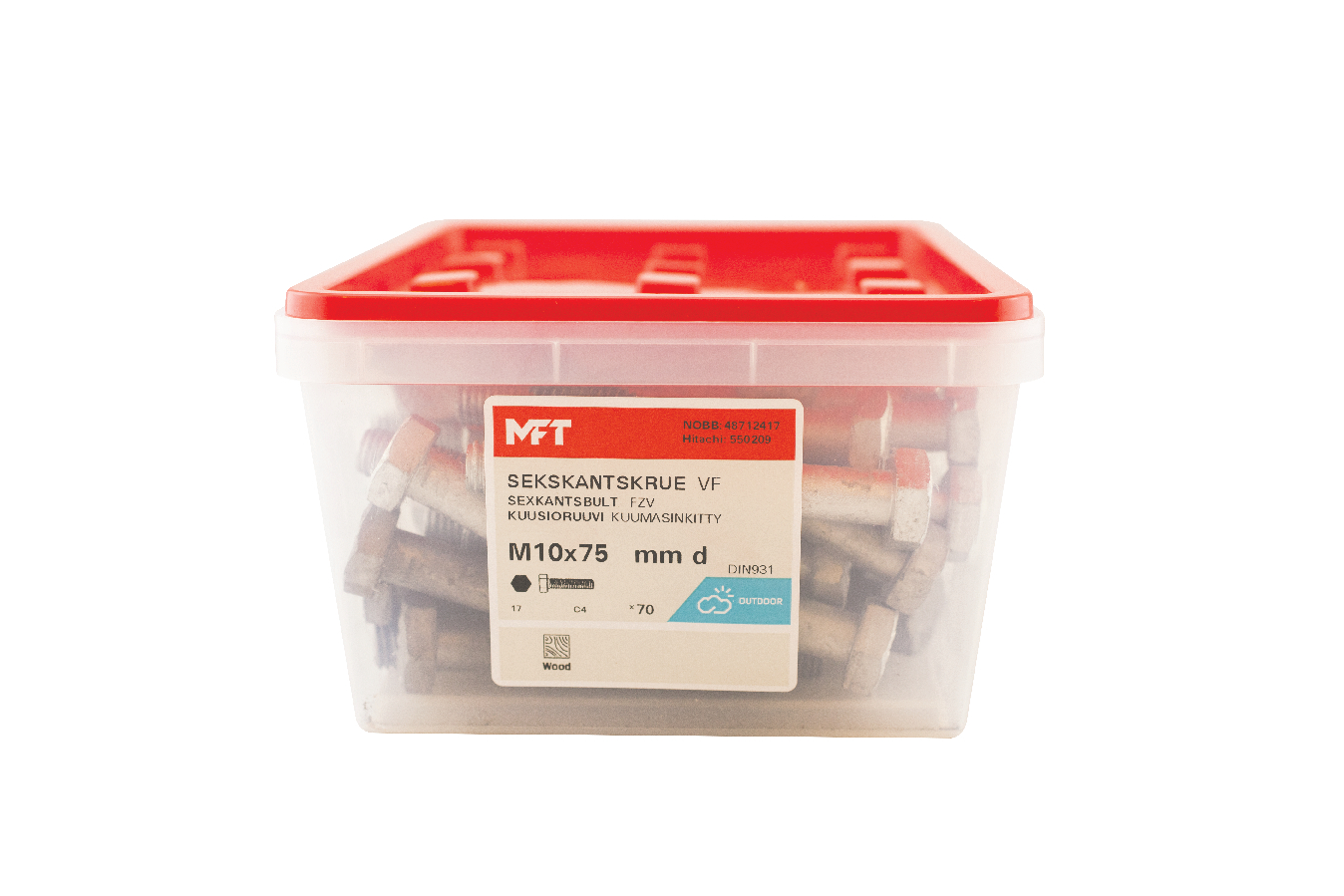 MFT Sekskantskrue M6S brukes sammen med mutter ved sammenskruing av detaljer. For innendørs og utendørs bruk.