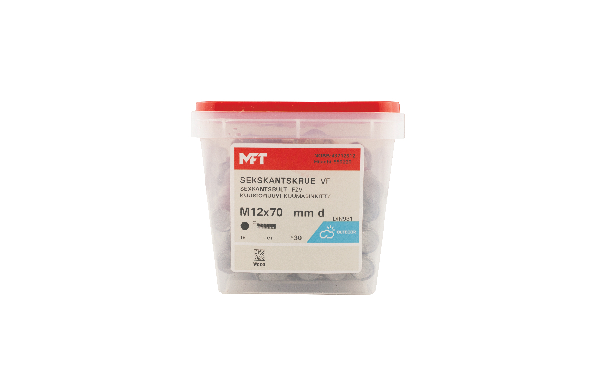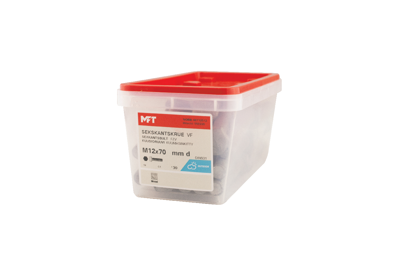 MFT Sekskantskrue M6S brukes sammen med mutter ved sammenskruing av detaljer. For innendørs og utendørs bruk.