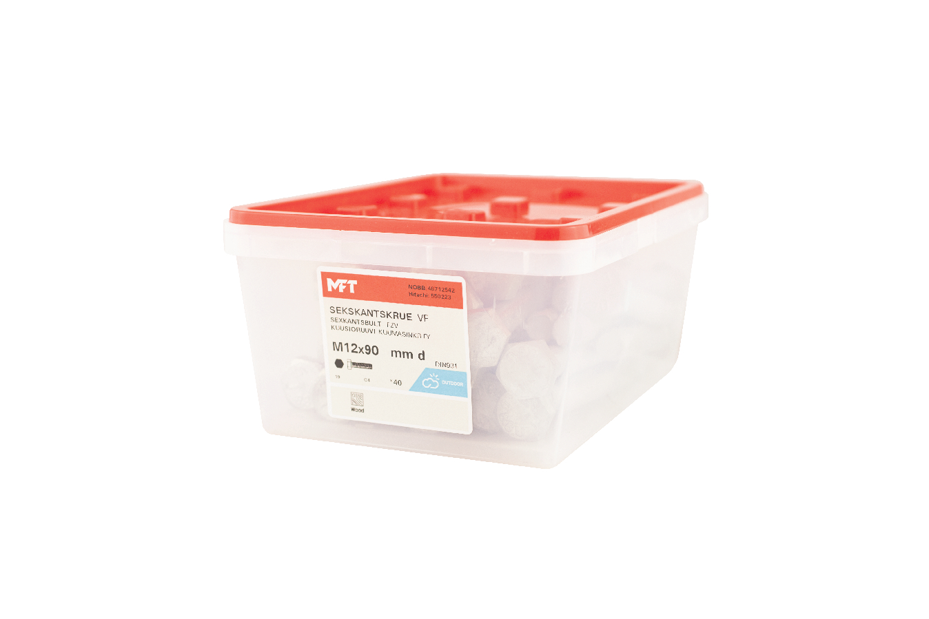 MFT Sekskantskrue M6S brukes sammen med mutter ved sammenskruing av detaljer. For innendørs og utendørs bruk.