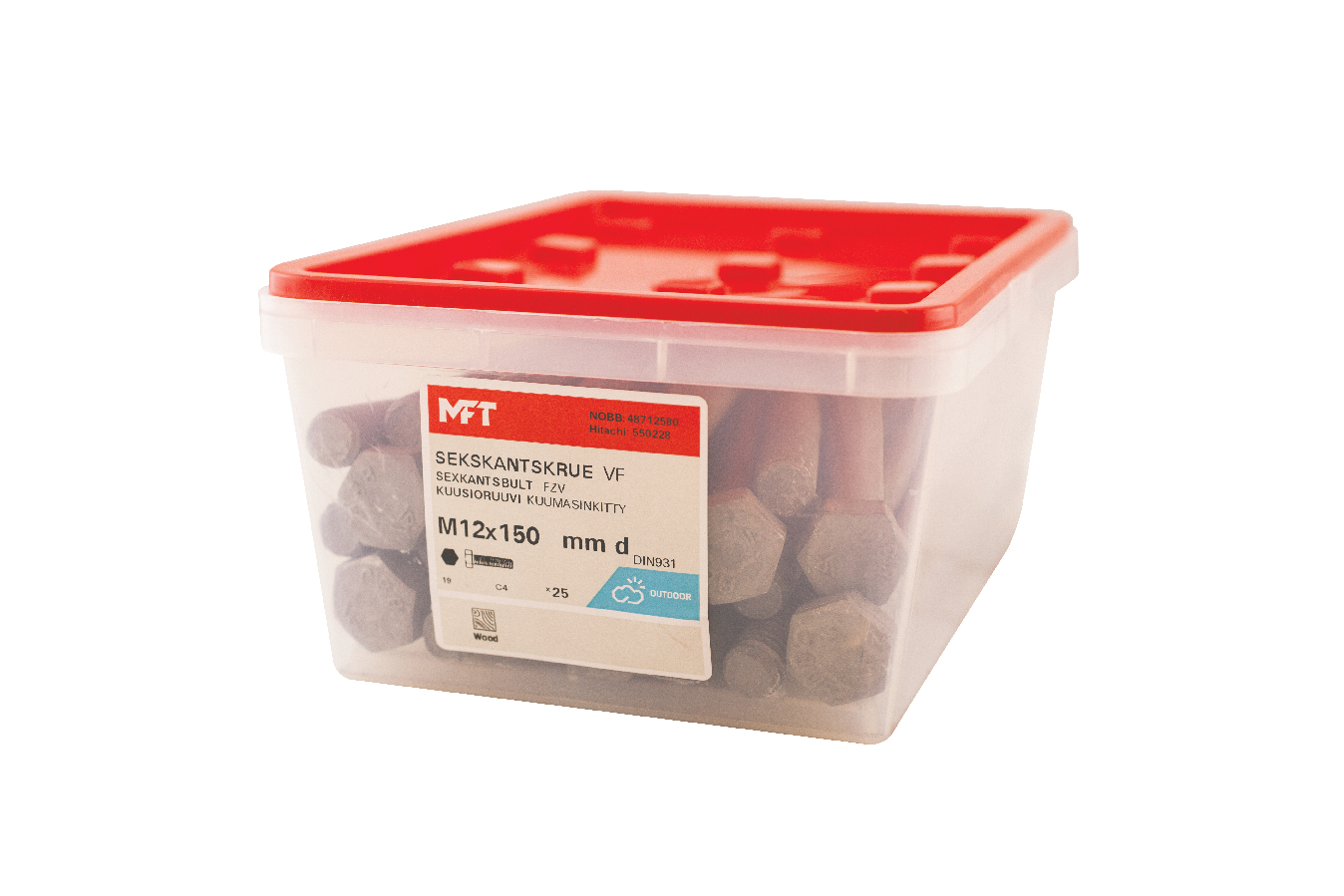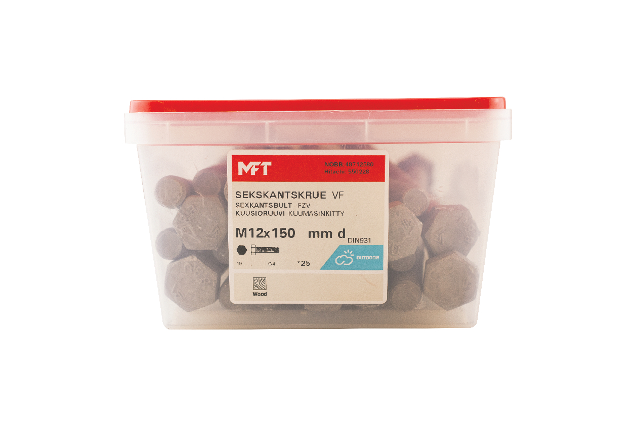 MFT Sekskantskrue M6S brukes sammen med mutter ved sammenskruing av detaljer. For innendørs og utendørs bruk.