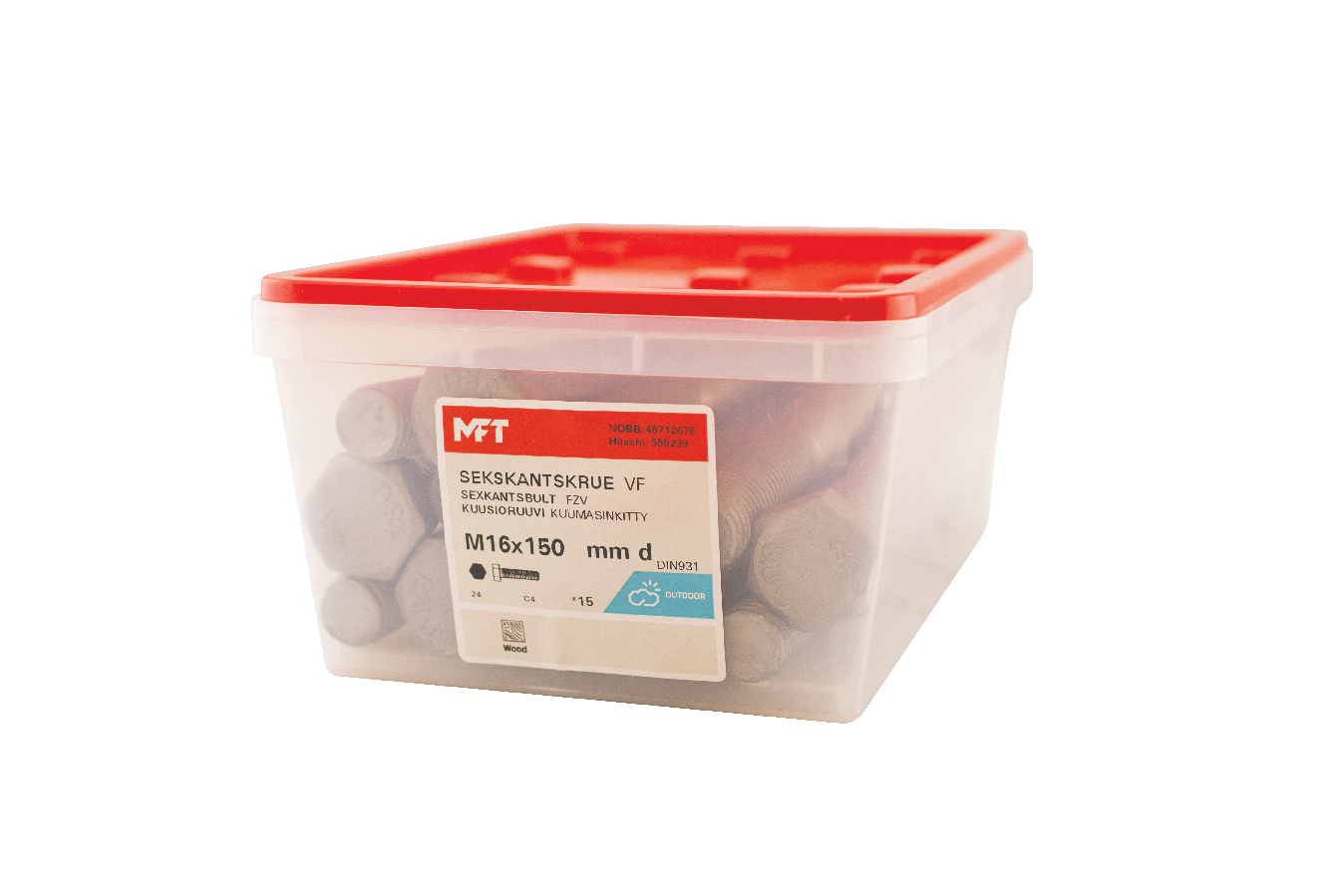 MFT Sekskantskrue M6S brukes sammen med mutter ved sammenskruing av detaljer. For innendørs og utendørs bruk.