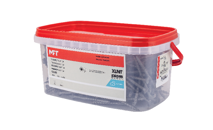 MFT Treskrue XLNT med forsenket hode er tilpasset for montasje i trekonstruksjoner der det stilles høye krav, som f.eks. ved skruing av bærende konstruksjoner til terrasser, uteplasser mm. Overflatebehandling MFT 2000 gjør at skruen kan monteres innen-/utendørs i C4 klassifiserte miljøer. For innendørs og utendørs bruk.