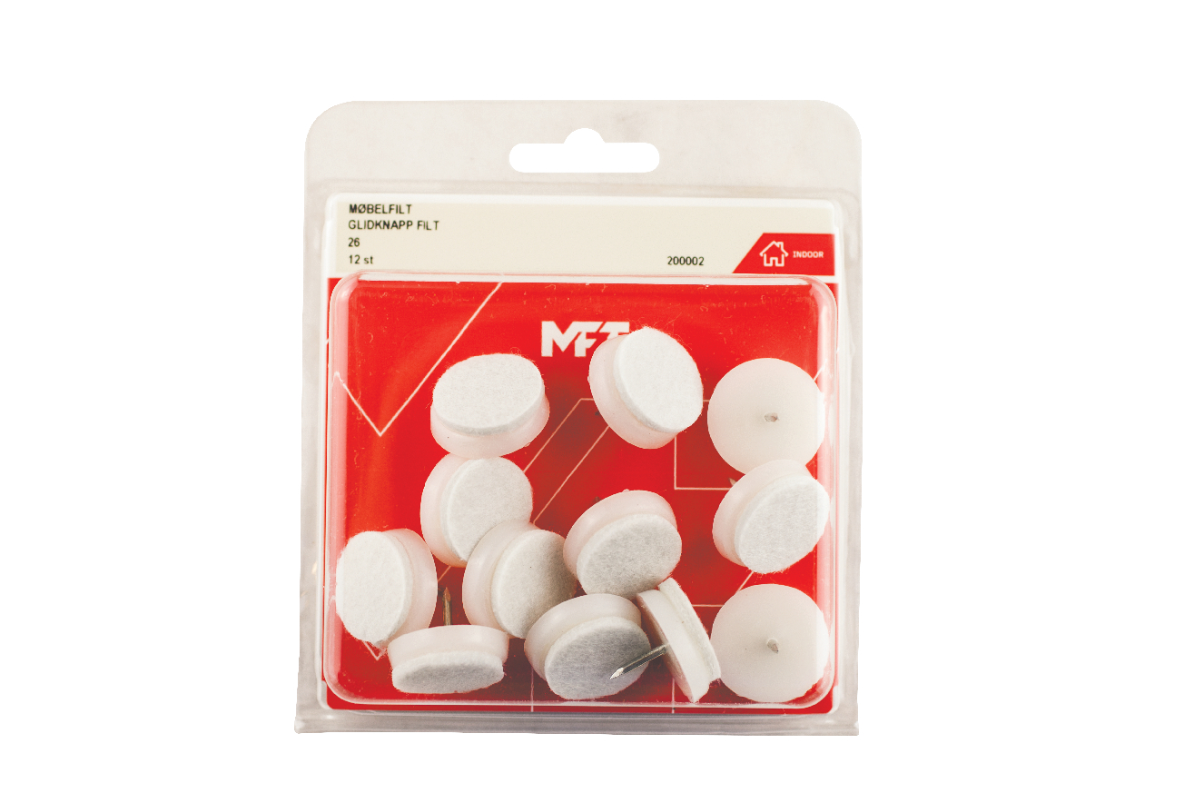 Brukes for å beskytte gulv mot riper og slitasje. Festes på bord-/stolben mm. med hjelp av en hammer.