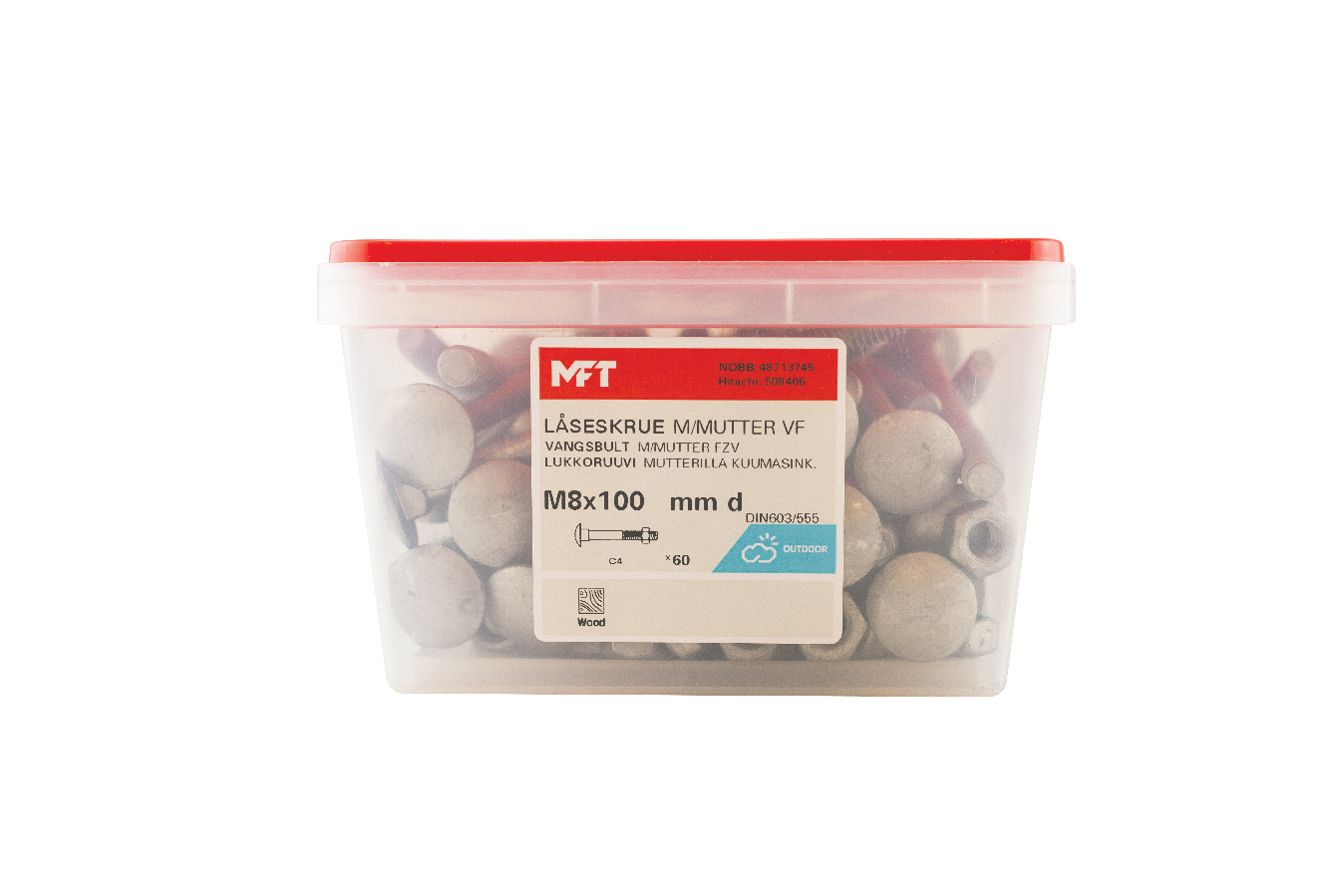 MFT Låseskrue med mutter brukes for sammenskruing av trestendere, platematerialer mot underlag av tre eller stål. Under det kuppelformede hodet er det en firkant som fungerer som en låsing i det mykere materialet da sammenskruing skjer. For innendørs og utendørs bruk.
