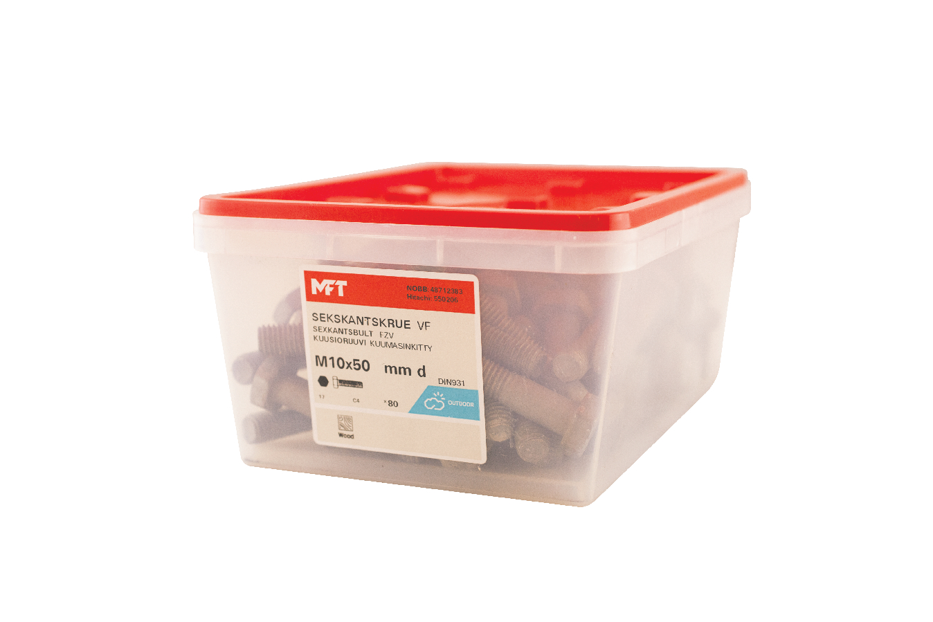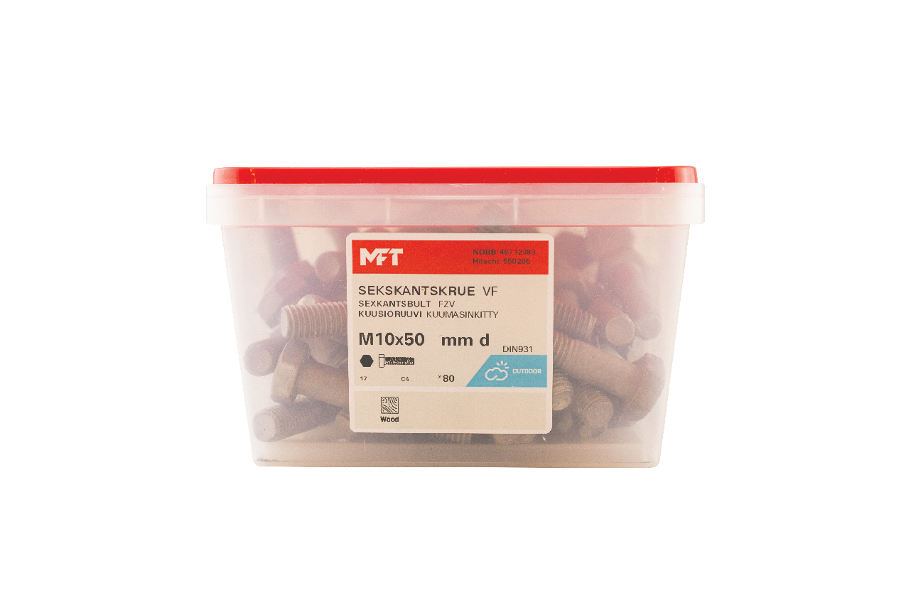 MFT Sekskantskrue M6S brukes sammen med mutter ved sammenskruing av detaljer. For innendørs og utendørs bruk.